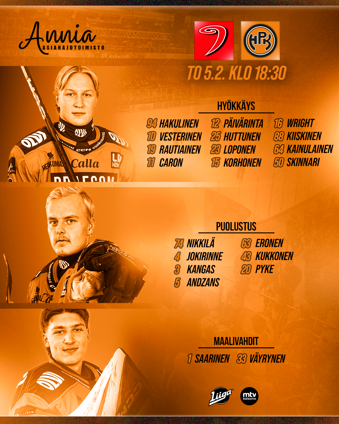 Torstain matsi on HPK:n viikon ensimmäinen. Lauantaina pelataan ysärimatsi kotona, kun Ässät saapuu Pohjantähti Areenalle. Liput tuttuun tyyliin live.day/hpk!