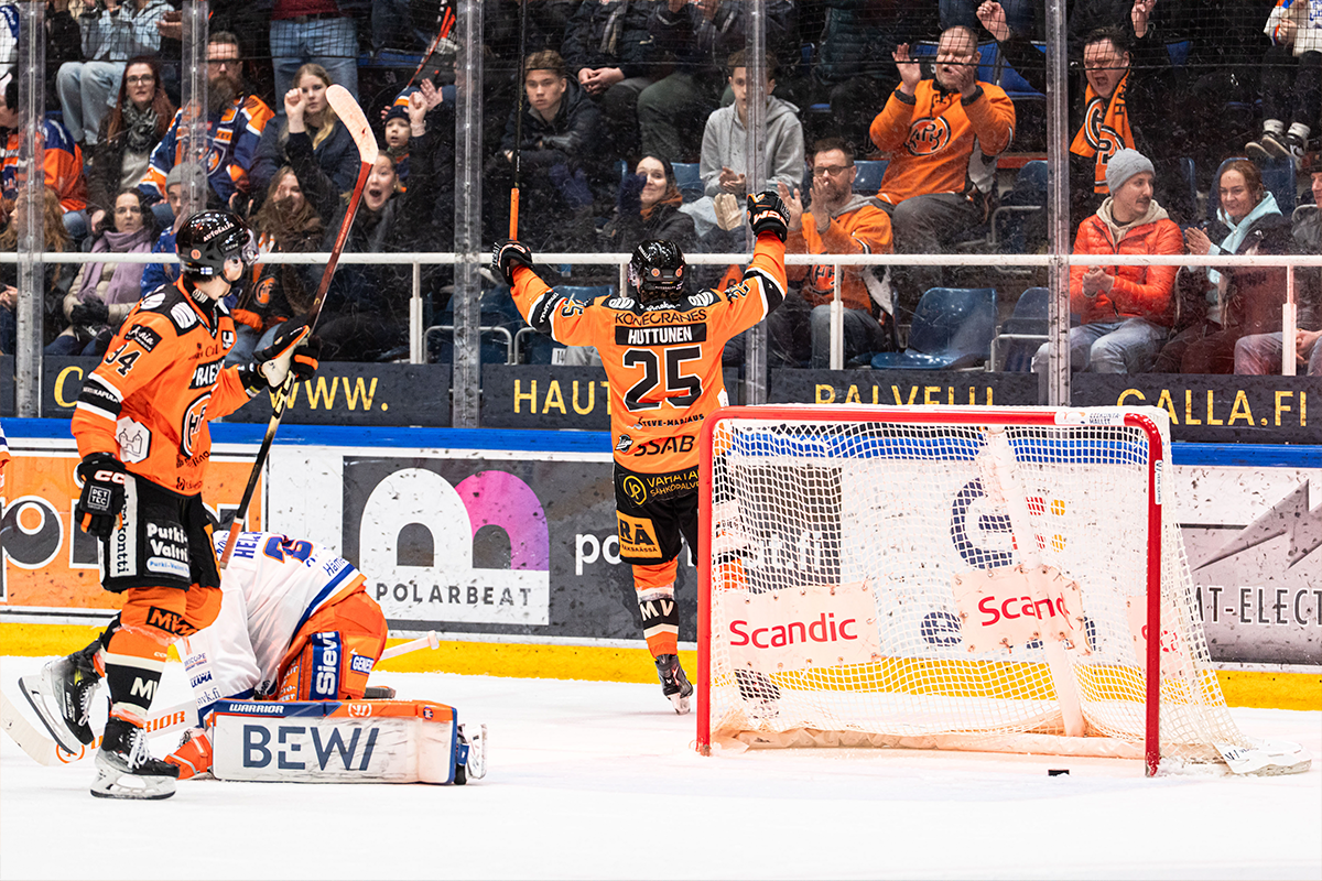 Huttunen pääsi tuulettamaan viimeksi Tapparaa vastaan kotiaskissa. Kuva: Teemu Hannula / Hiisi Visuals
