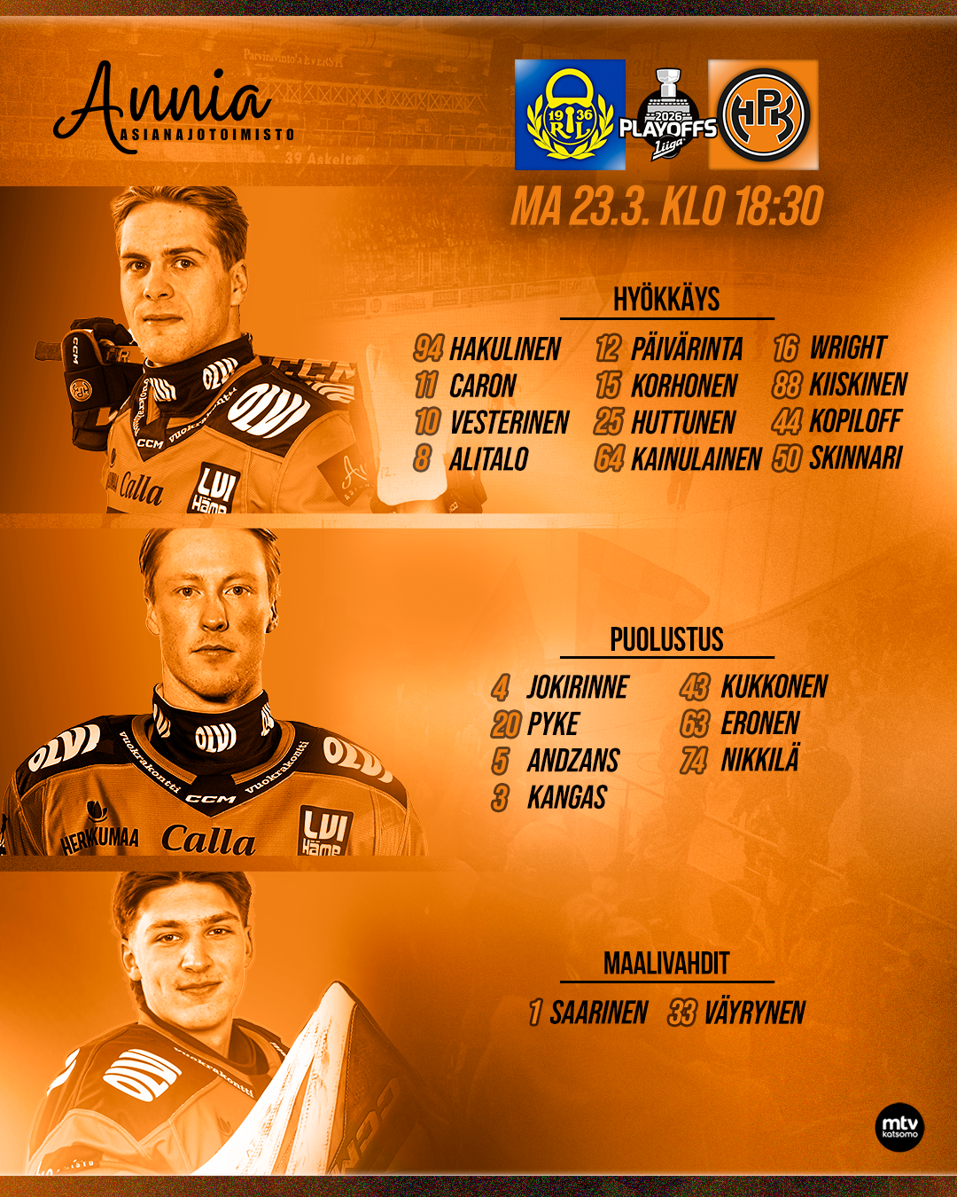 to 26.3. klo 18.30 Lukko-HPK (tarvittaessa)