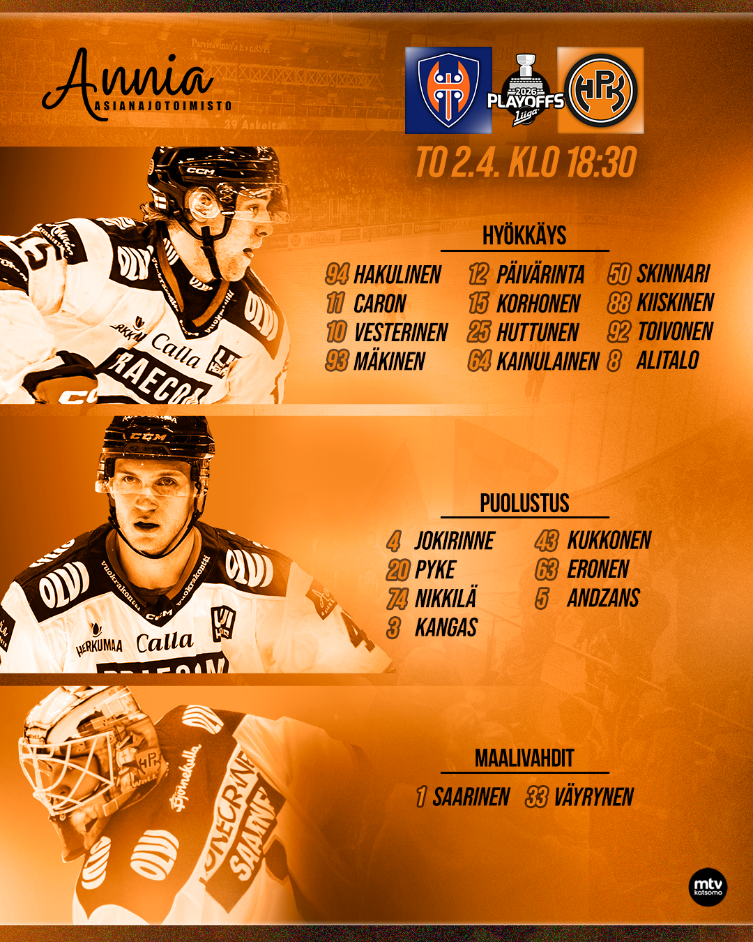 la 4.4. klo 17:00 HPK-Tappara